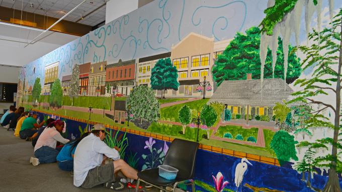 "Une Rue Principale en Louisiane" is on display at the Gardner Center with many other Bead Town works of art. Not to be missed!